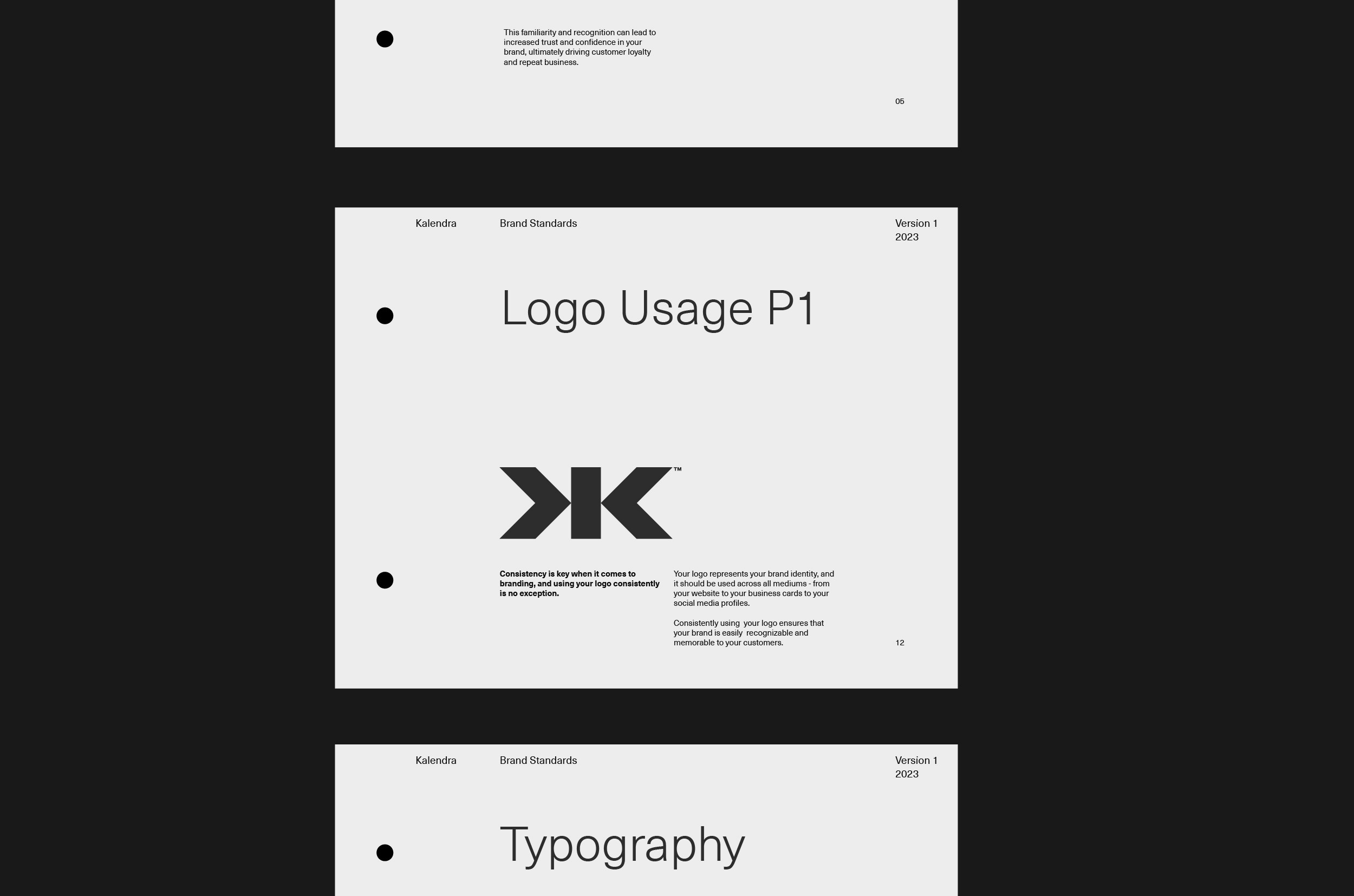 Kalendra’s logo features two arrows supporting a central block, subtly forming two “K”s. This design conveys stability, precision, and forward motion, reinforcing the firm’s commitment to reliability and strategic guidance. The mark is clean, modern, and instantly recognizable, signaling sophistication and trustworthiness.