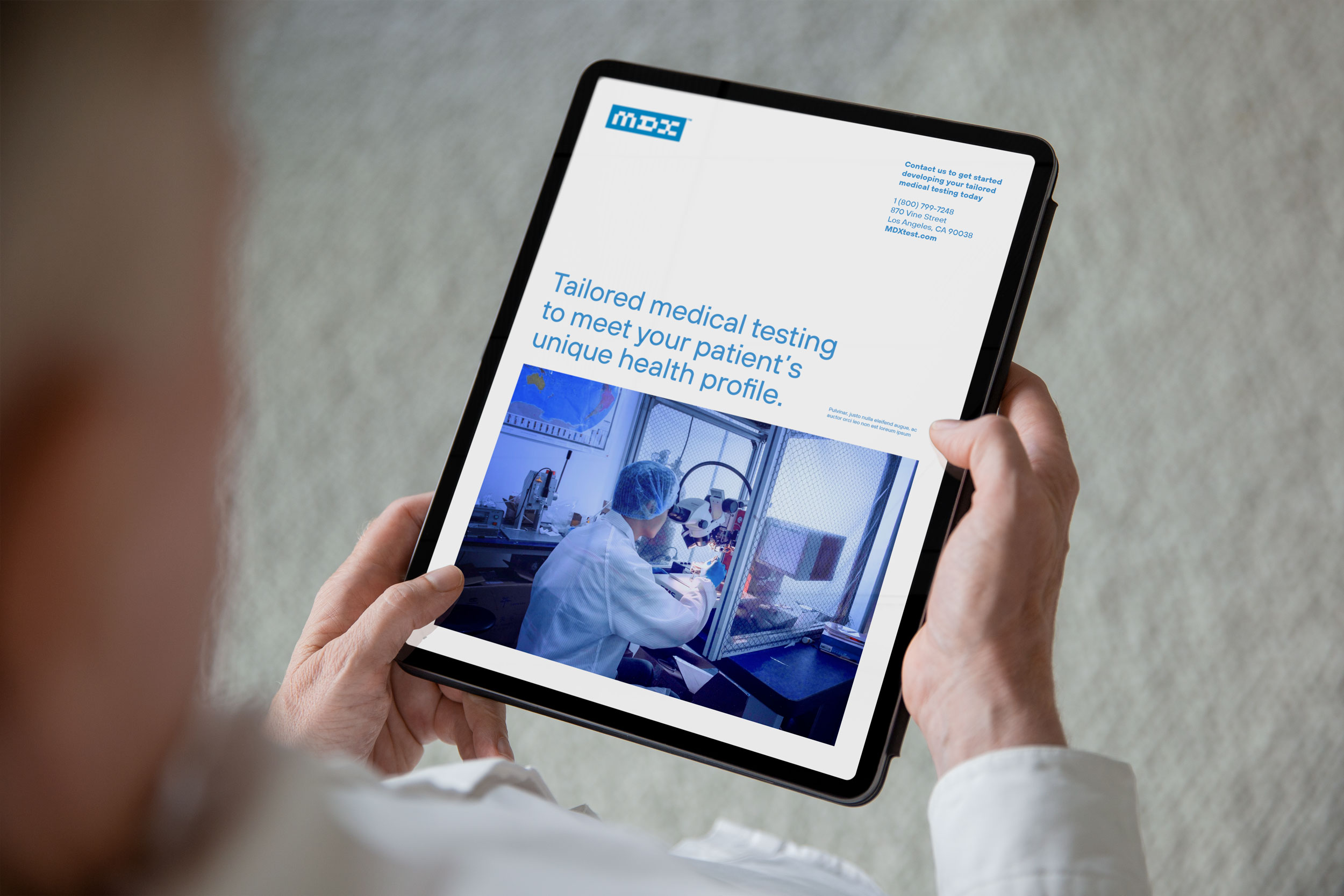 MDX’s brand strategy emphasizes trust, precision, and forward-thinking innovation. The goal was to create a brand that balances clinical authority with approachability, appealing to both healthcare partners and direct-to-consumer audiences. Every visual and verbal touchpoint—logo, typography, color, and imagery—was designed to reinforce MDX’s credibility, reliability, and commitment to cutting-edge diagnostics, while also making complex science feel accessible and relevant to customers.