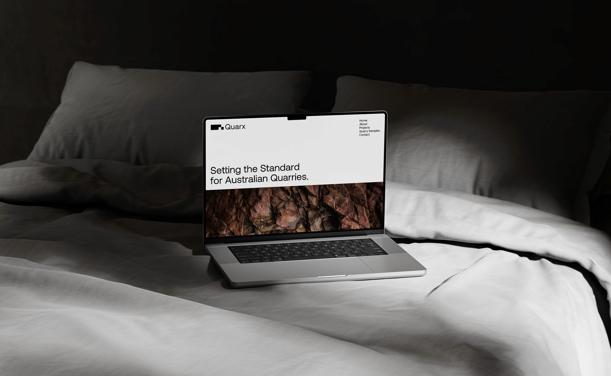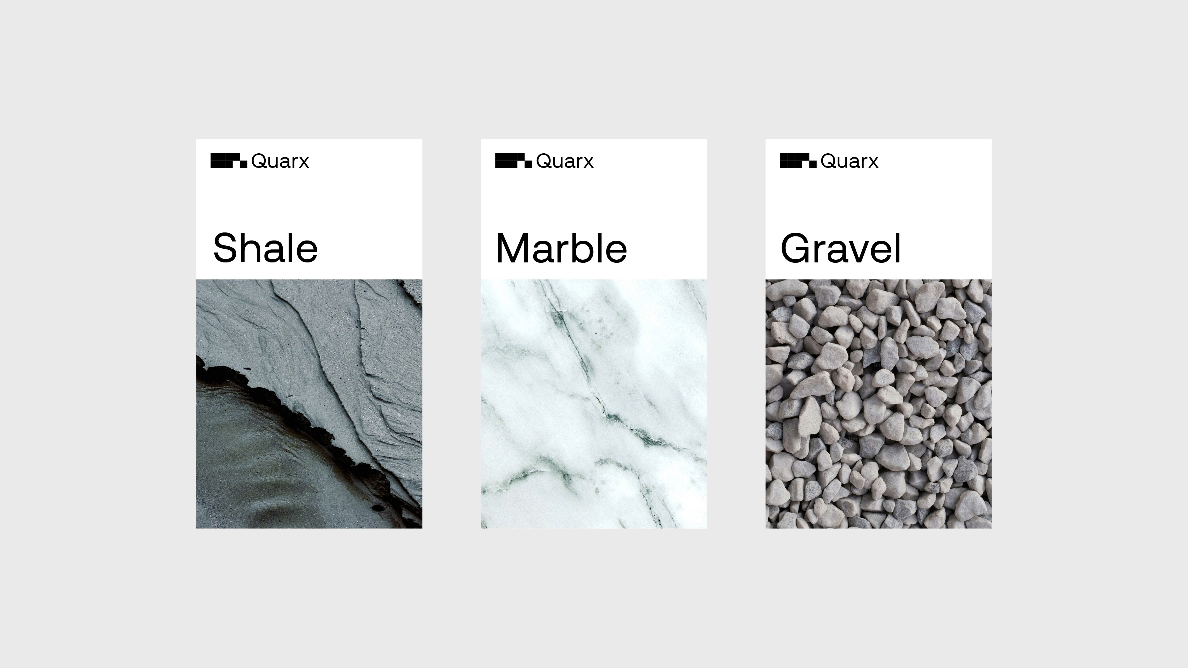 The name was developed directly from the brand strategy. Quarx references both the quarrying industry and the concept of a subatomic particle, reinforcing ideas of precision, strength, and material science. An abstract name was intentionally chosen to support strong differentiation and ease of trademarking.